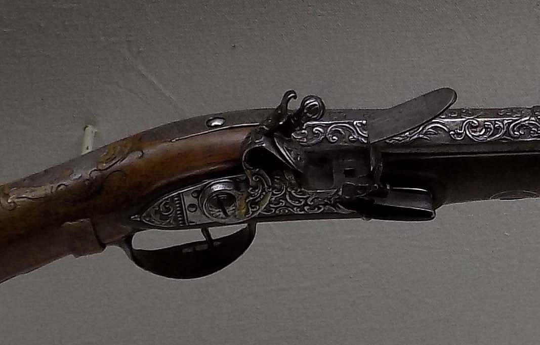 Originally presented to Louis XV of France by Catherine the Great of Russia, this historic firearm represents the association of two great dynasties of the 18th century. The blunderbuss is inlaid with a silver portrait bust of Louis XV forward of the breech.