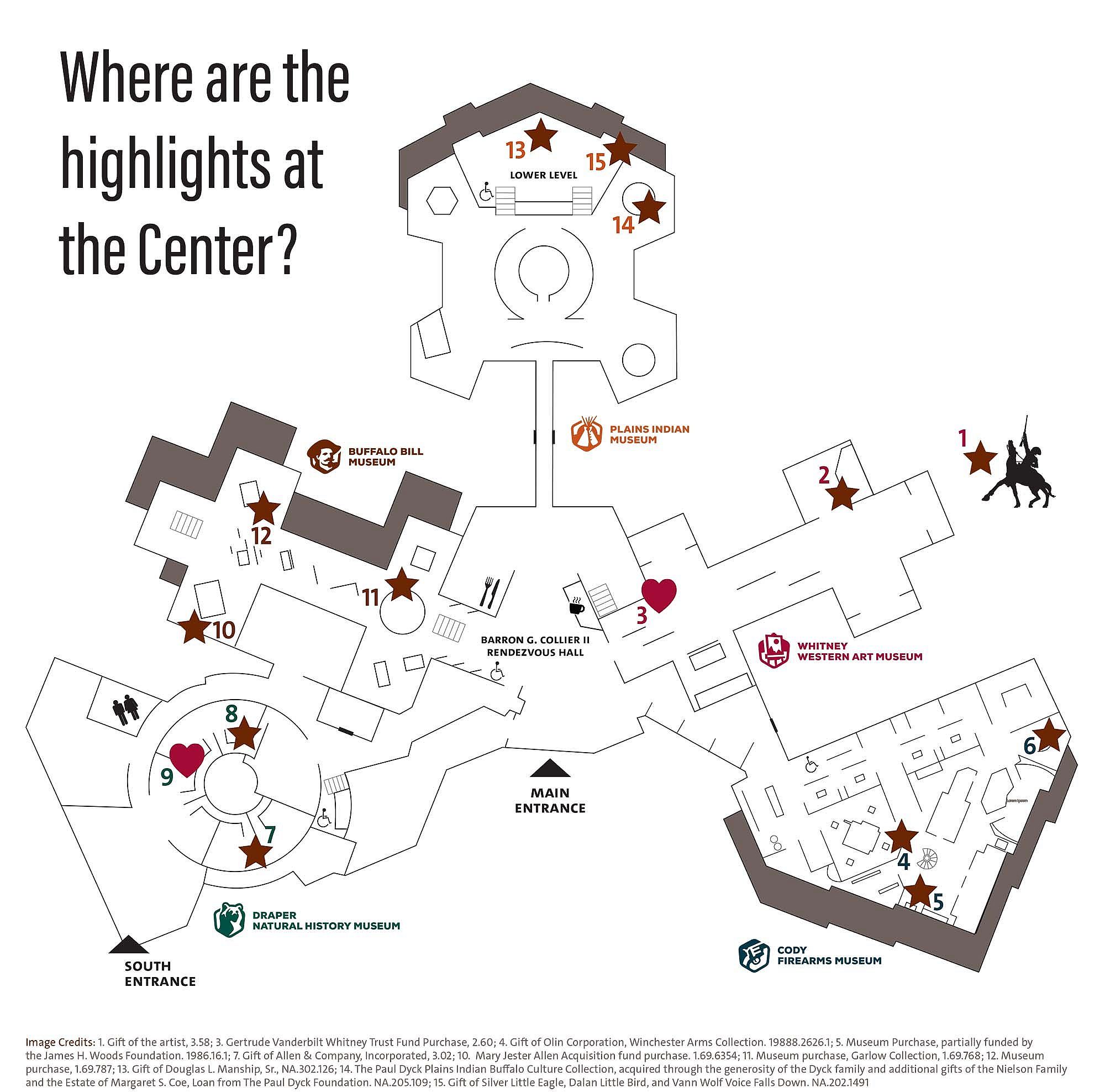 If you have limited time or simply crave some direction as you explore the vast space, this tour calls attention to several—but of course not all—of the Center of the West’s highlights. Enjoy your journey!