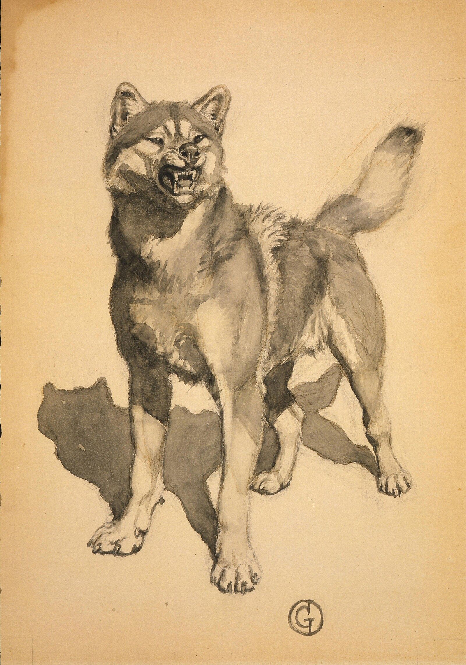 While Wyeth and Schoonover seemed focused on the male figure, Goodwin liked animals. His early work shows an almost psychic empathy, as if he is inhabiting them himself. After graduation, Philip sold a couple of pictures to The Saturday Evening Post, and the art editor, Thornton Hardy, thought enough of Goodwin that when he received a book manuscript in 1903 called The Wolf, he suggested to young Goodwin that he might be a perfect match. It wouldn’t pay well, however, for the author was an unknown.