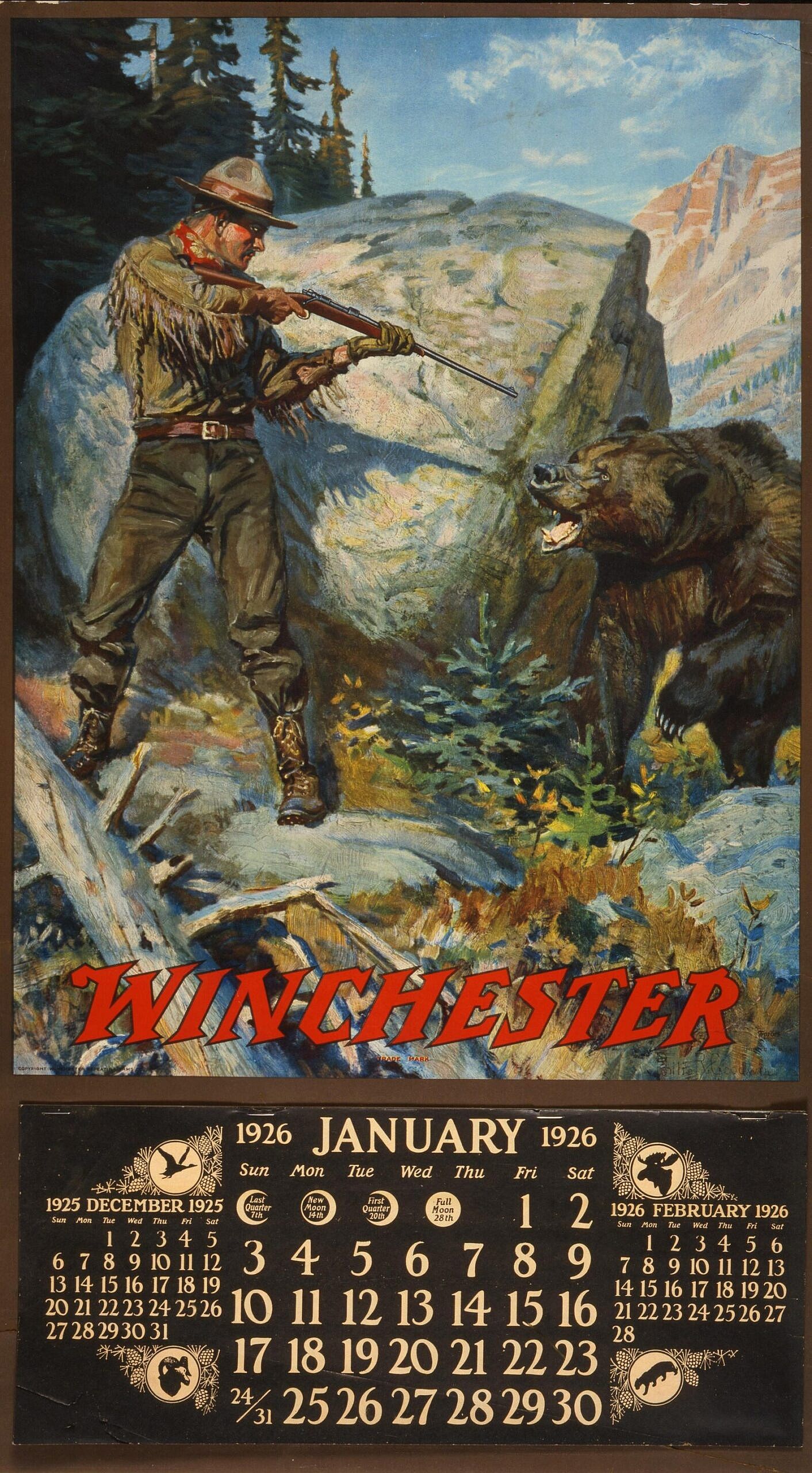 Calendar illustration by Philip R. Goodwin. Note the empty space at the bottom of the picture. Whitney Western Art Museum.