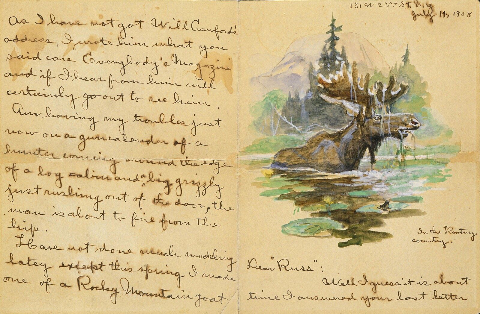 Philip Goodwin and Charlie Russell continued to correspond for years after their meeting, sending each other illustrated letters. Whitney Western Art Museum.