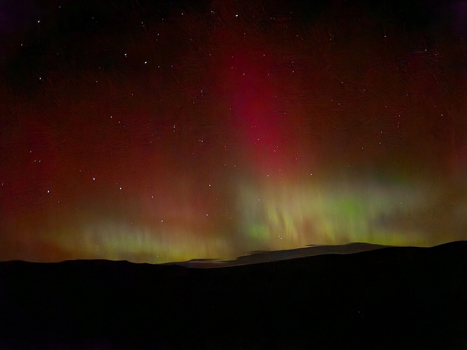 Corey Anco and Amy Phillips, DNHM staff, were treated to the Northern Lights just after midnight while spotlighting for black-footed ferrets.