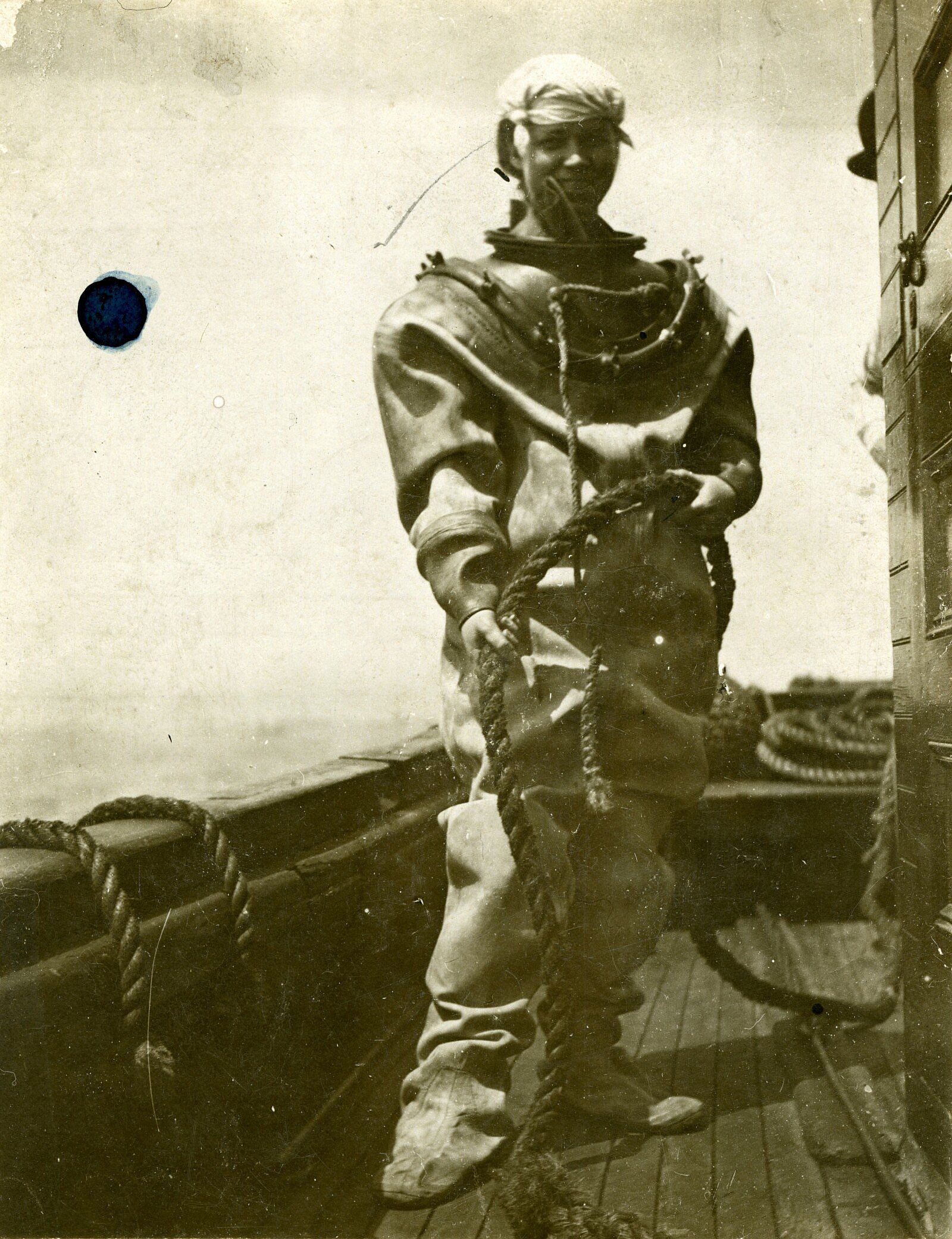 First and foremost, Caroline Lockhart did not want to be seen as incapable. If there was ever a moment where she felt nervous or fearful, she hardly admitted it in her writing. Perhaps it was the reassurance of the doctor from years before who treated her when she was thrown off a mustang and injured her arm. As her arm was being set, she carried on eating a green apple to the doctor’s astonishment. He remarked that if she didn’t faint then, she never would. She mentions this memory in her article recounting the dive into the harbor, though she had yet to discover how this article would boost her reputation.