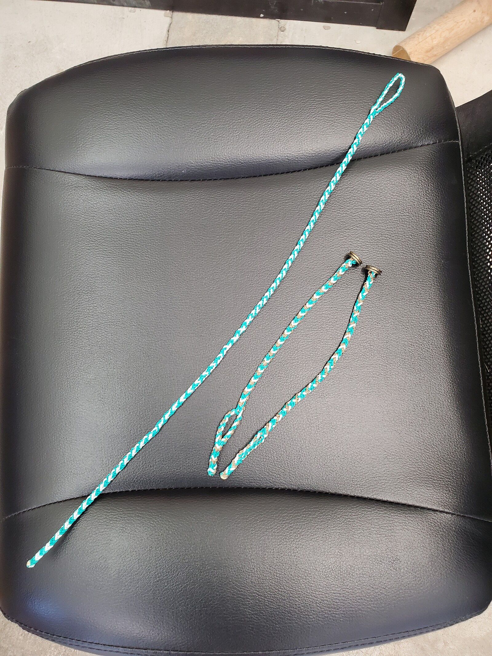 Leash: Made from a single strap leather or braided nylon. Often have a slit at one of the ends for the swivel to slide through. After connecting to the swivel, the other end is tied to the gloves D-ring with a specific knot. The leash is important as it prevents accidental escape and keeps it safe from potential injury if the bird chooses to bate.